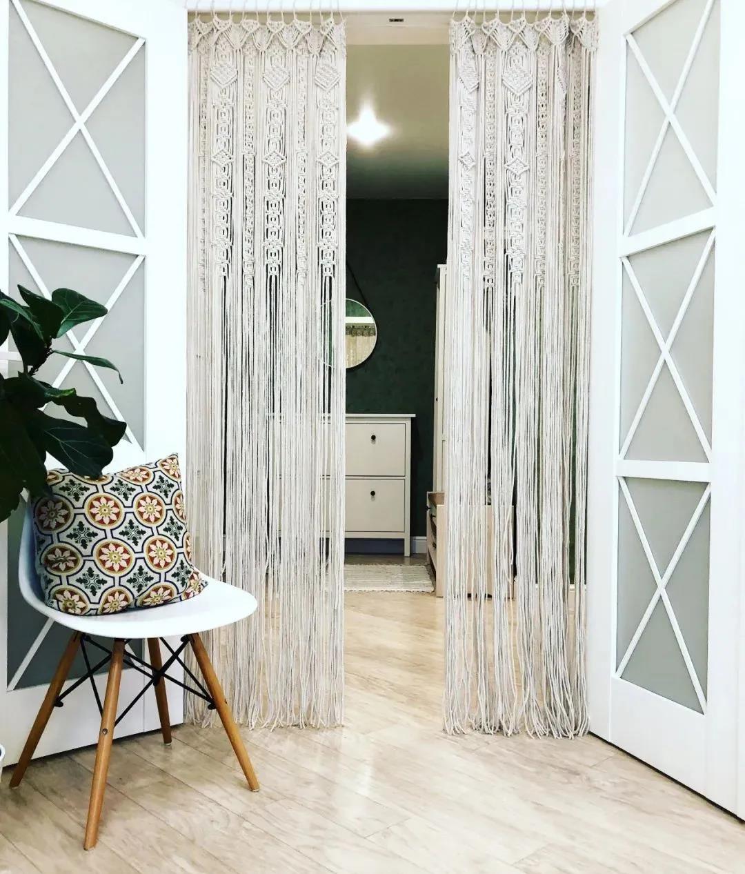 珠簾可以作為玄關(guān)隔斷,也可以裝在門上,裝飾性強但實用性低;竹簾是兒時的記憶,老房子的窗戶上以及門上都會掛著竹簾,一般出現(xiàn)在原木風這類裝修風格中。
