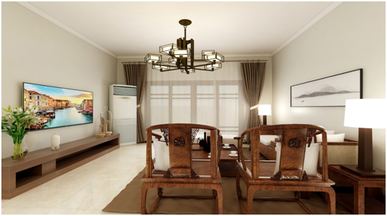 業(yè)主在開始咨詢裝修的時(shí)候,就想做中式或新中式的風(fēng)格,后期家具配飾呢也是在朝著這個(gè)方向努力。在宜居的同時(shí)又不喜歡太復(fù)雜的造型,同時(shí)電視墻又比較短。所以電視墻并沒有做什么修飾,其實(shí)電視往墻上一掛也沒有多少空間了,沙發(fā)背景配以一副新中式的裝飾畫,還是比較有意境的。