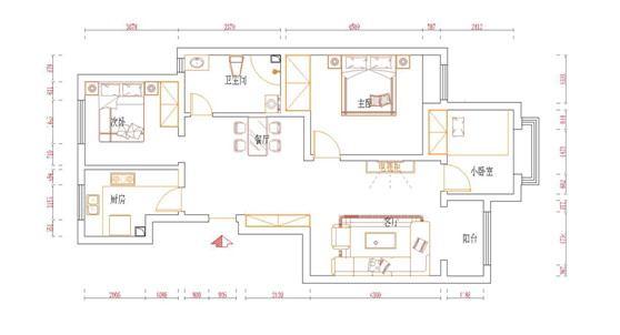 原始圖分析:本方戶型為三室兩廳半南北通透戶型,屬于明客廳明陽臺,明廚明衛(wèi),主臥室還有一個大飄窗,便于儲存一些零碎的東西,小臥室有一個飄窗,可以做一個飄窗柜,平時休閑看書用。廚房屬于細長型結(jié)構(gòu),衛(wèi)生間空間比較大能夠合理擺放潔具。