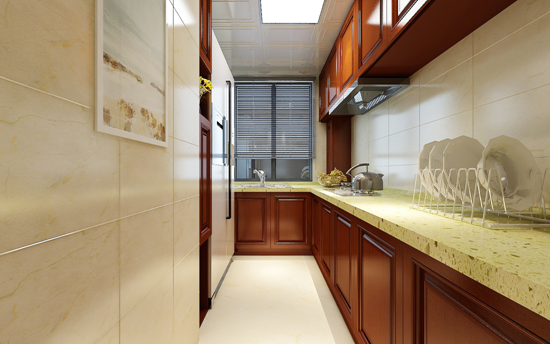 廚房空間采光也很理想,此時在選擇瓷磚上也是需要色彩比較深,表面比較明亮的瓷片磚,這樣的話會顯示出廚房的整潔,此外也要注重實用與儲物空間,對于大多數業主來說,廚房的儲物空間似乎都沒有夠過,隨著時間的推移,鍋碗瓢盆跟衣服一樣,越來越多,空間越來越擁擠,所以再做廚房設計的時候盡量注重盡可能加大廚房的儲物空間。
