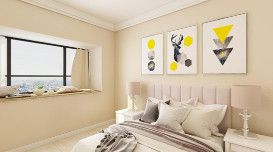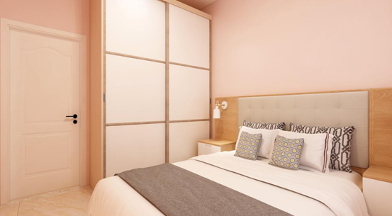 主臥室以溫馨舒適為主,素雅大方淺色墻面配以淺色軟包床頭家具足以體現(xiàn)主人的品位,在設(shè)計上床頭兩側(cè)的床頭柜放了臺燈,方便主任夜間讀書,為房間注入了溫馨自然的格調(diào),隨時都能保持一份心靈的寧靜,回歸內(nèi)心深處。