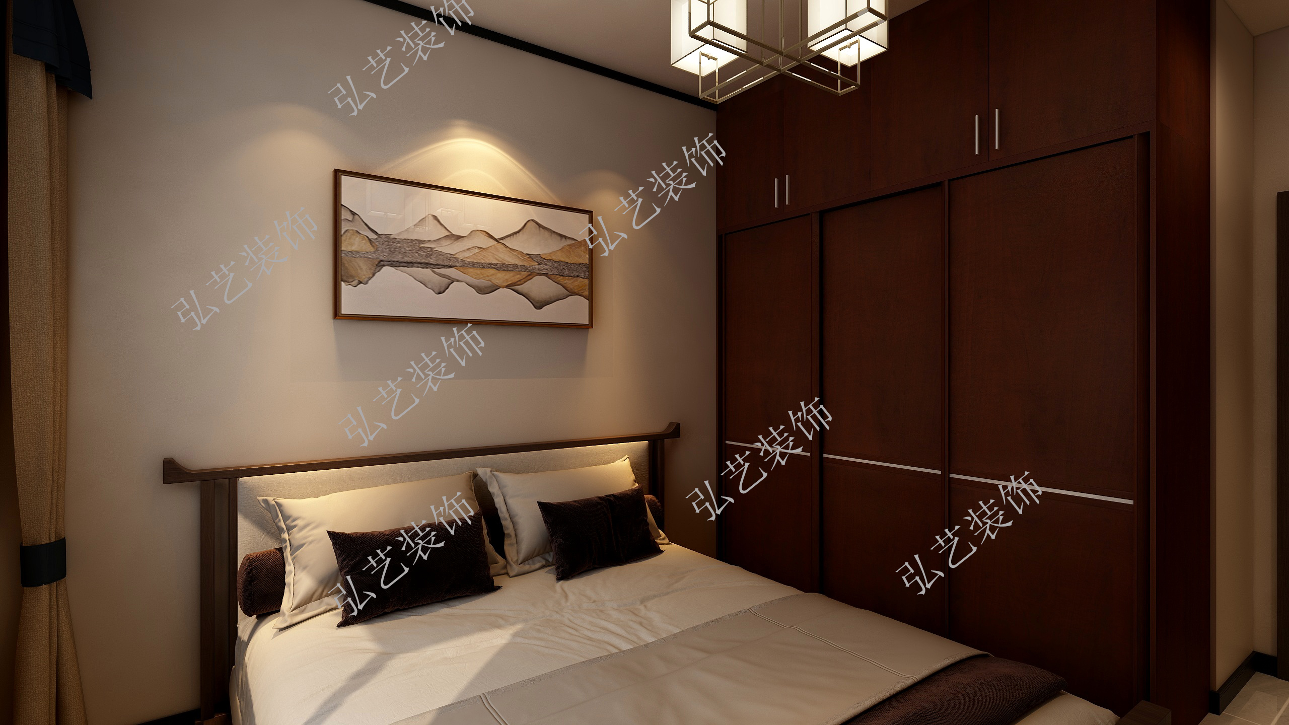 臥室為我們日常的休息場所,臥室在家中有著舉足輕重的地位,一間美式風格的臥室,更是讓人倍感溫馨雅致。便是如何利用新中式風格中的三種經典的元素,打造一個格調滿滿的臥室。床型采用純正的新中式風格設計,床頭是四邊形,加以優質的實木,造型簡約又不失格調,為整個臥室的新中式風格打下基礎。床體以優質桃花心木和芬蘭松木制成,木紋美觀,質地堅硬,而且讓床體具有很好的承重性,經久耐用。新中式臥室裝修設計上,主人是有很大的發言權的,因為這是主人專屬的領地,設計成什么樣才好,完全取決于主人的標準。在追求風格與實用性的選擇上,主人完全可以按照自己的想法打造,而不必拘泥于所謂形式