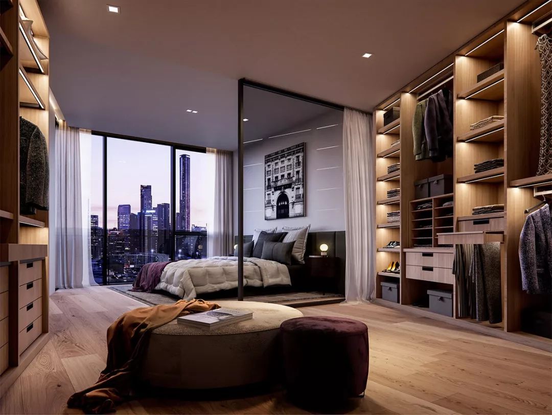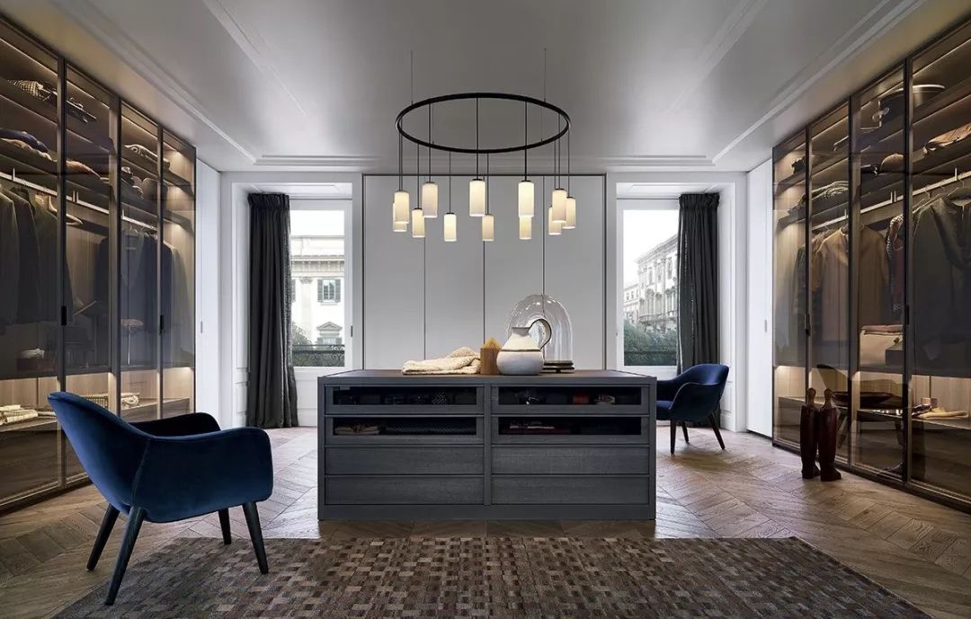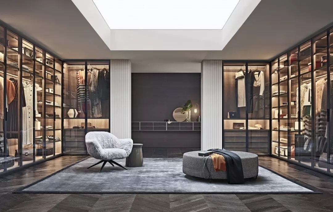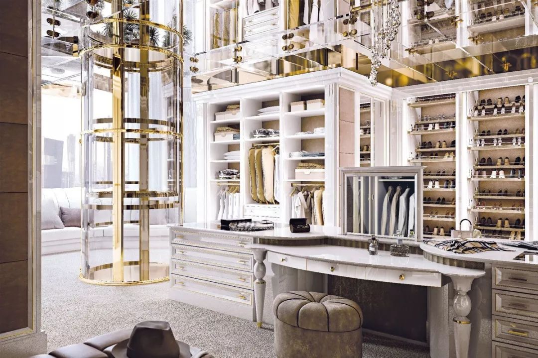 步入式衣柜起源于歐洲,與一般衣柜相比,其儲放空間更完整,衣物取用也更加便利。但因為它不僅要有足夠的儲物空間,還要預留給使用者行走的通道,因此在豪宅中更為流行。