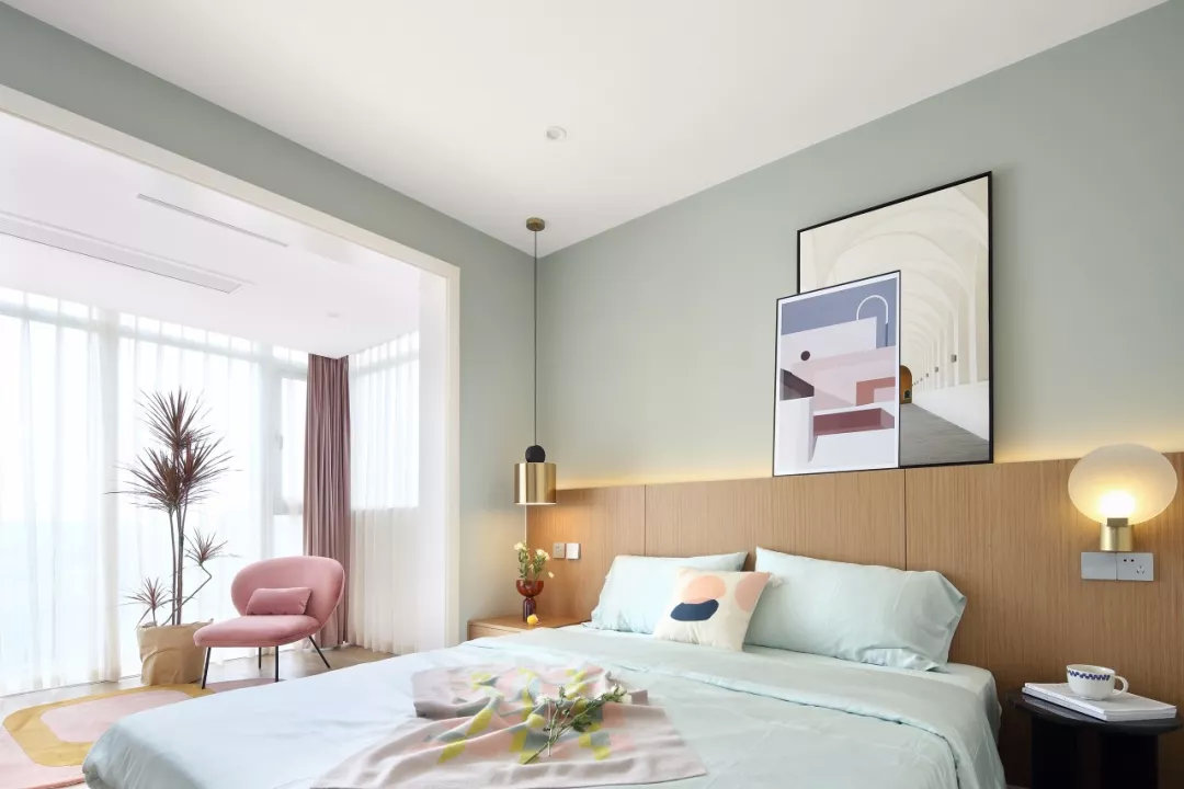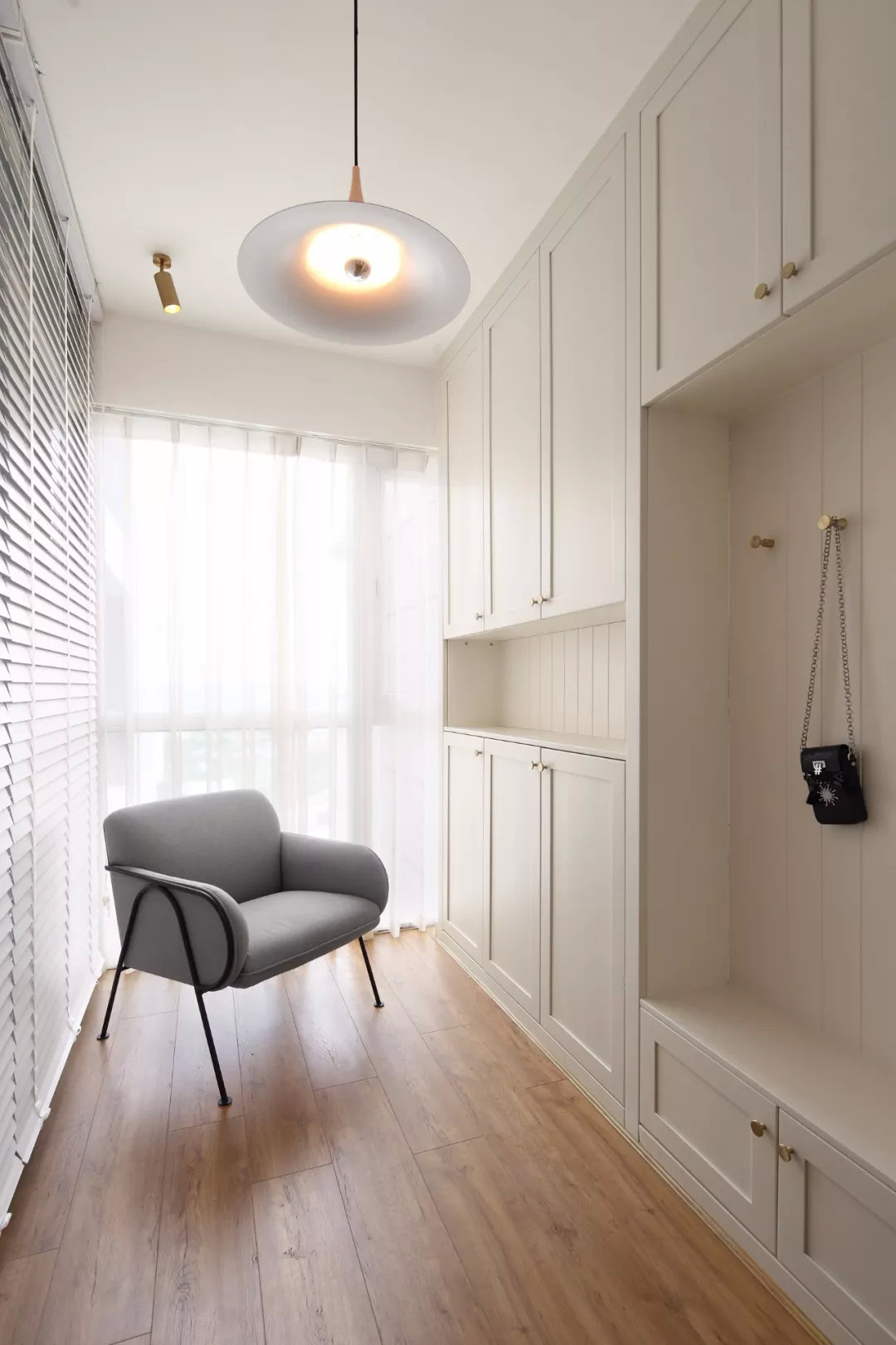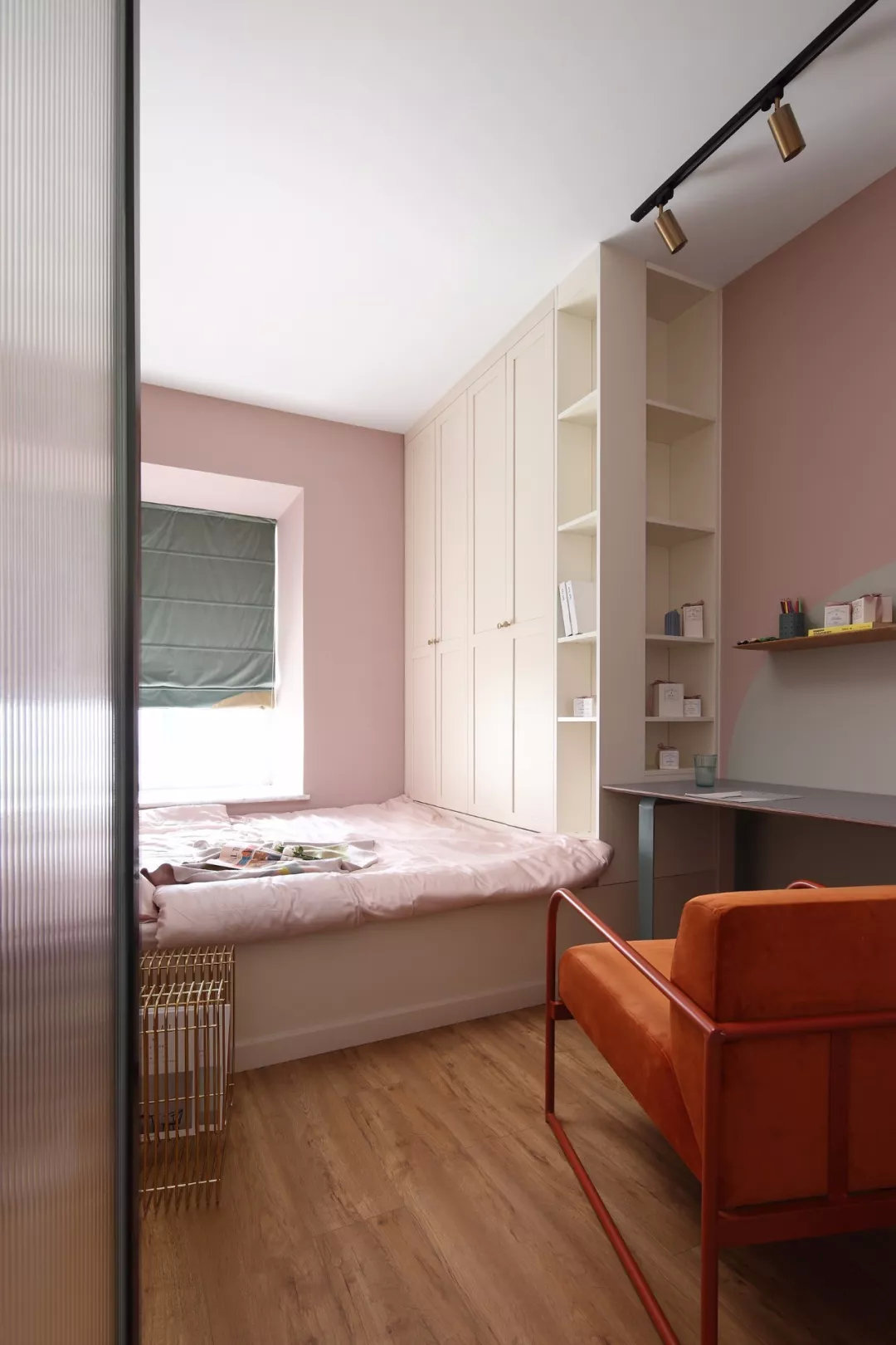 主臥室外的陽臺被包進來改成了一個休閑區(qū),粉色的窗簾和椅子結(jié)合,讓這個空間變得更加可愛和浪漫。