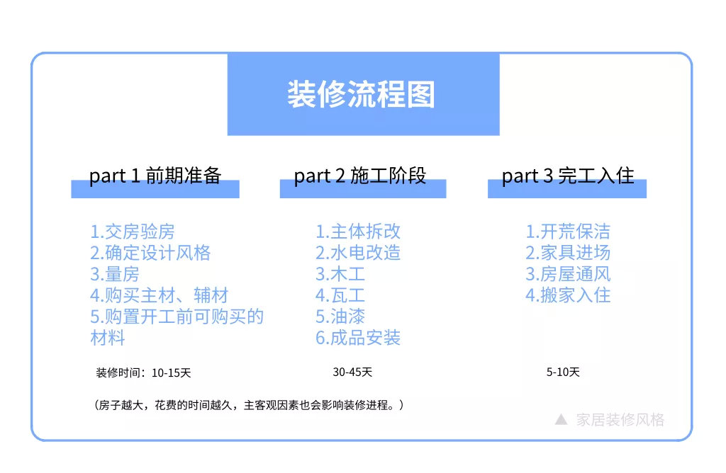 所以,對于裝修小白來說,熟知裝修流程是很有必要的。今天,糖糖專門整理了一篇新房裝修流程,希望能給大家一個參考和借鑒,起碼心里有底。